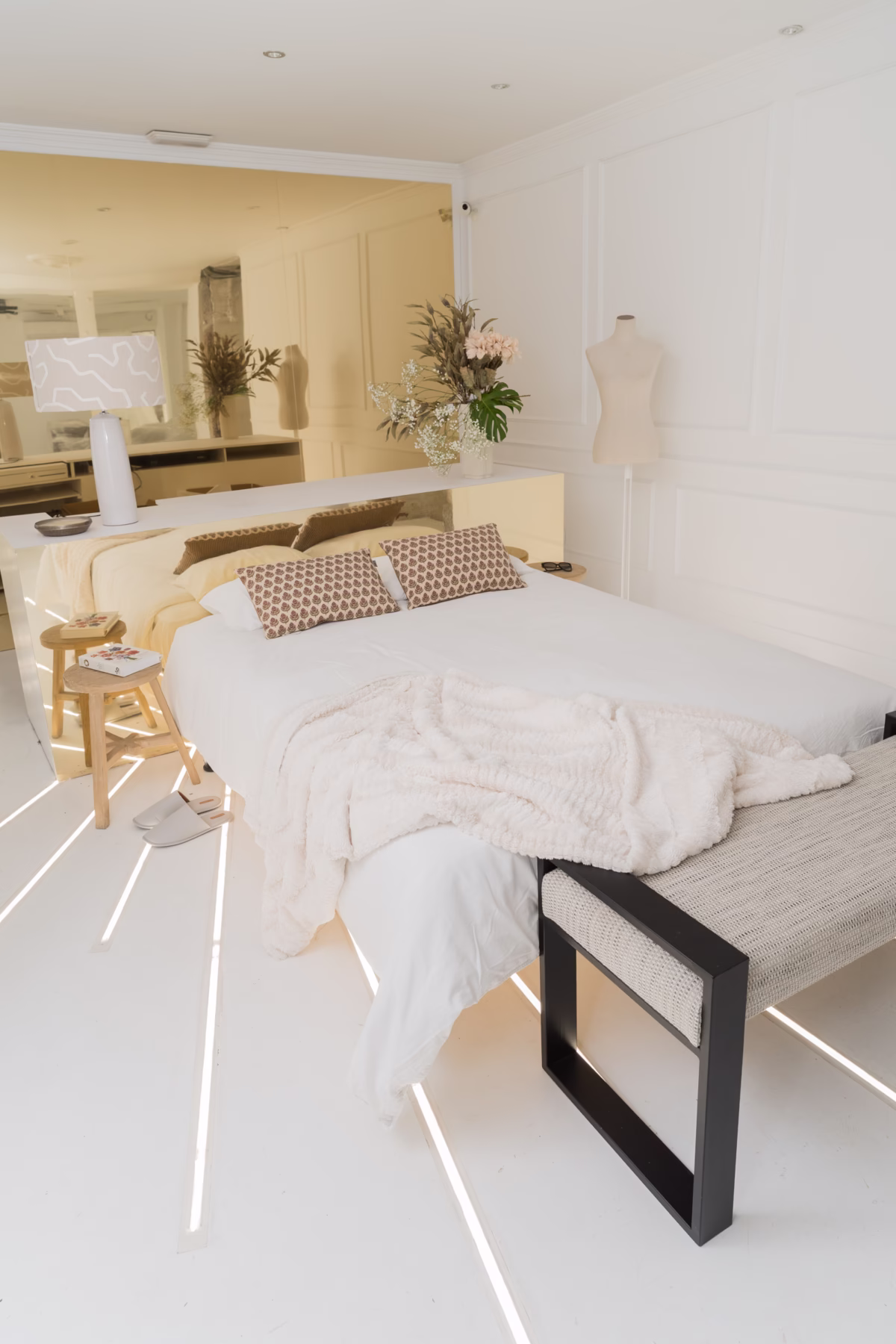 Este proyecto realizado para Gloss&Raffles es un ejemplo de producción fotográfica al realizar las fotos en un espacio multidisciplinar para mostrar los productos del cliente, en lugar de acudir a una vivienda con decoración permanente. Se generaron varios espacios como salón y dormitorio que muestro, editando todo después en tonos cálidos acordes al tipo de mobiliario que aparece.